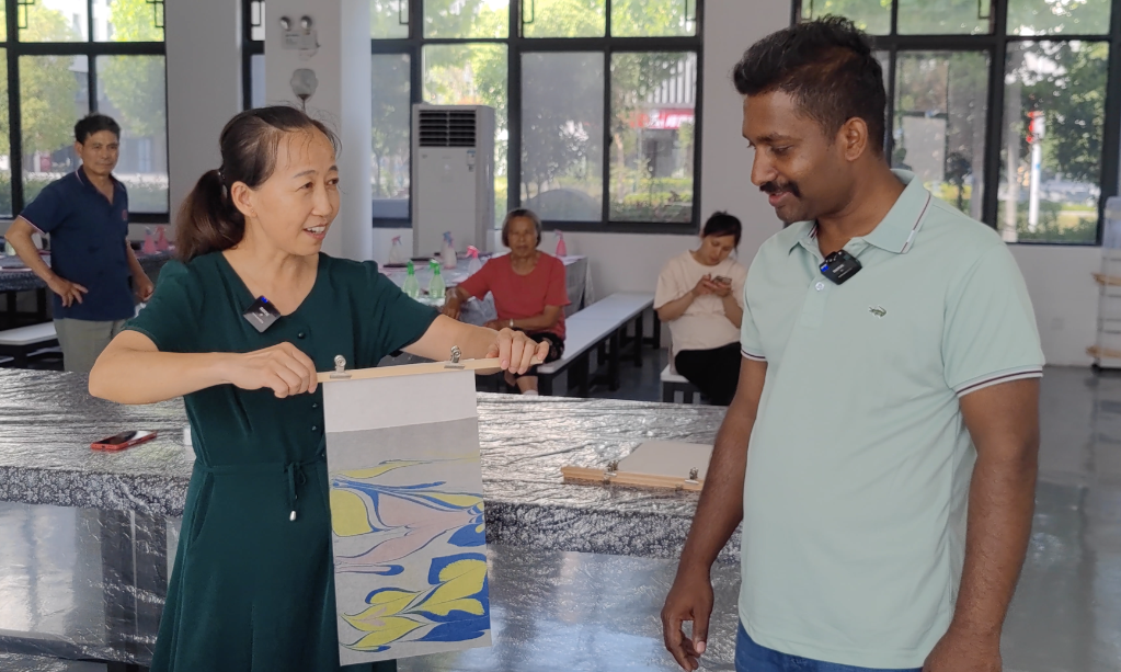 山姆这次收获了自己亲手制作的流沙笺。他希望未来有更多机会学习这项技艺,更希望与在印度的朋友分享自己的作品。