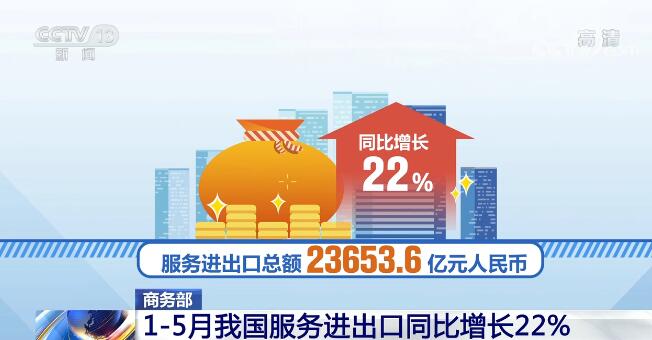 1—5月,知识密集型服务进出口9886.7亿元,增长10%。其中,知识密集型服务出口5602.4亿元,增长13.6%;出口增长较快的领域是电信计算机和信息服务、其他商业服务,分别增长18.5%、13.2%。知识密集型服务进口4284.3亿元,增长5.6%;进口增长较快的领域是保险服务,增速达74.2%。