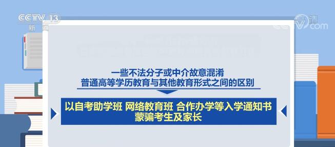 一些不法分子或中介故意混淆普通高等学历教育与其他教育形式之间的区别,以自考助学班、网络教育班、合作办学等入学通知书蒙骗考生及家长。部分办学机构打着普通高等学历教育的幌子,实际招收其他教育形式的学员。教育部提醒广大考生及家长,这些所谓的“录取通知书”不是普通高等学历教育的录取通知书,“入学”后也不能进行普通高等学历教育新生学籍电子注册,更拿不到普通高等学校学历证书。普通高等学历教育学生均须通过高考招录。
