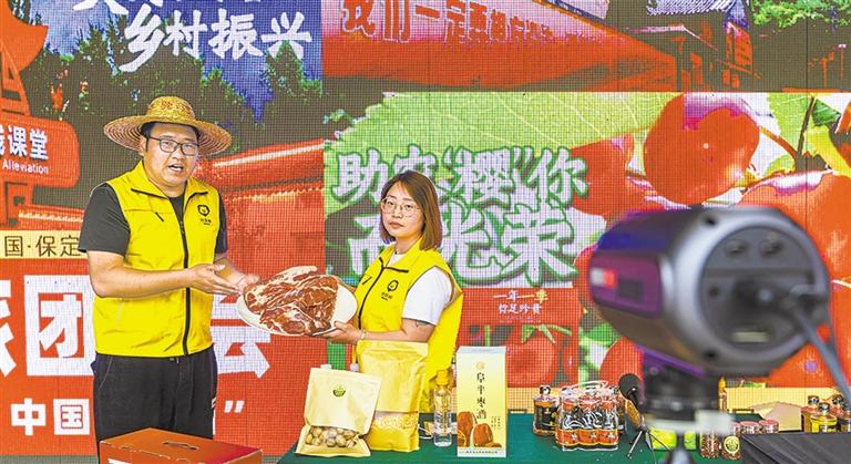 阜平县骆驼湾村“农旅团购会”直播团队,在为当地农副产品直播带货。