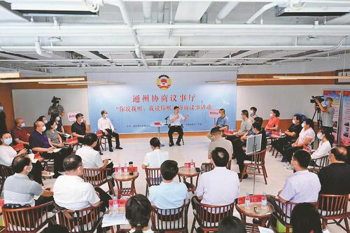 2021年5月31日,通州区政协印发《关于设立通州协商议事厅,开展“你说我听,我说你听”协商议事活动的意见》,建立“协商议事厅——你说我听,我说你听”协商议事机制。通州区政协党组副书记、常务副主席尚祖国介绍,截至目前,协商议事厅共开展40余场活动,500余人次委员和界别群众参与,协商事项100余件,解决92件。“如今,这一协商议事机制已成为通州区政协民主协商的重要实践,也成为通州区政协的品牌活动,真正实现了‘有事好商量、说话有地方、服务送上门’。”