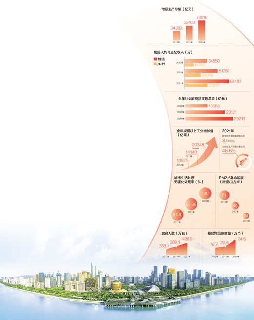 回首浙江发展这十年,不平凡的是奋进实干的精神风貌,牢记习近平总书记的殷切嘱托,勇担使命,忠实践行“八八战略”、奋力打造“新时代全面展示中国特色社会主义制度优越性的重要窗口”;不平凡的是探路先行的责任担当,面对错综复杂局面,开启系统性变革,实现历史性跨越,高水平全面建成小康社会,站上了新的更高起点。