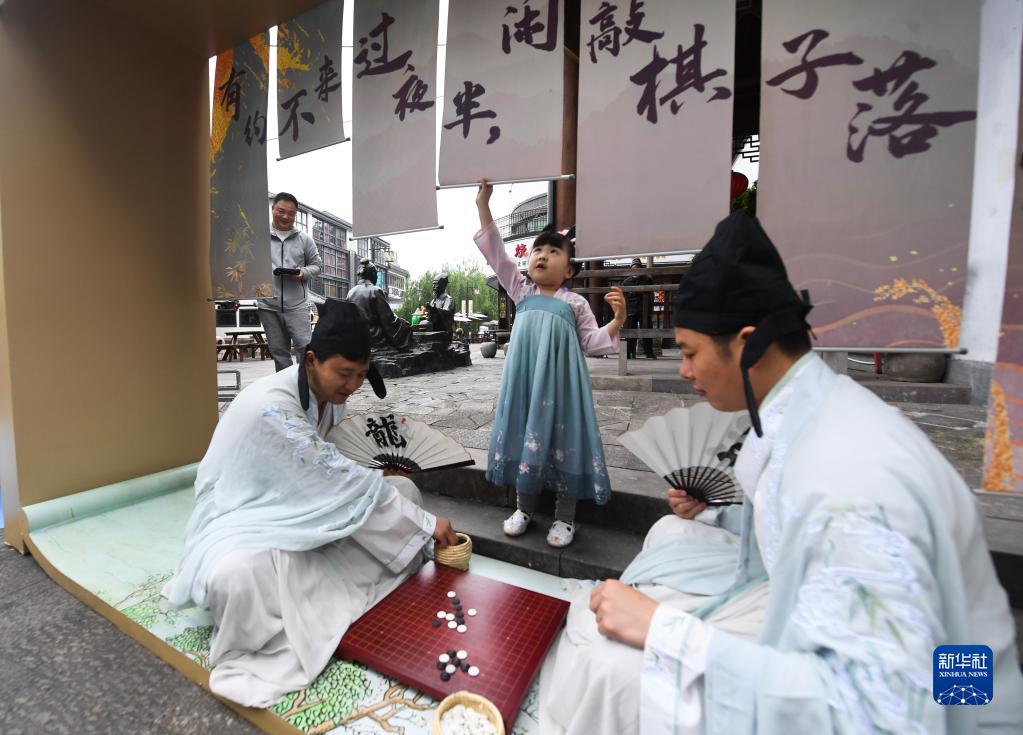 市民身着传统服饰参加在浙江省建德市寿昌古镇举办的传统文化活动(2022年4月30日摄)。新华社记者 徐昱 摄