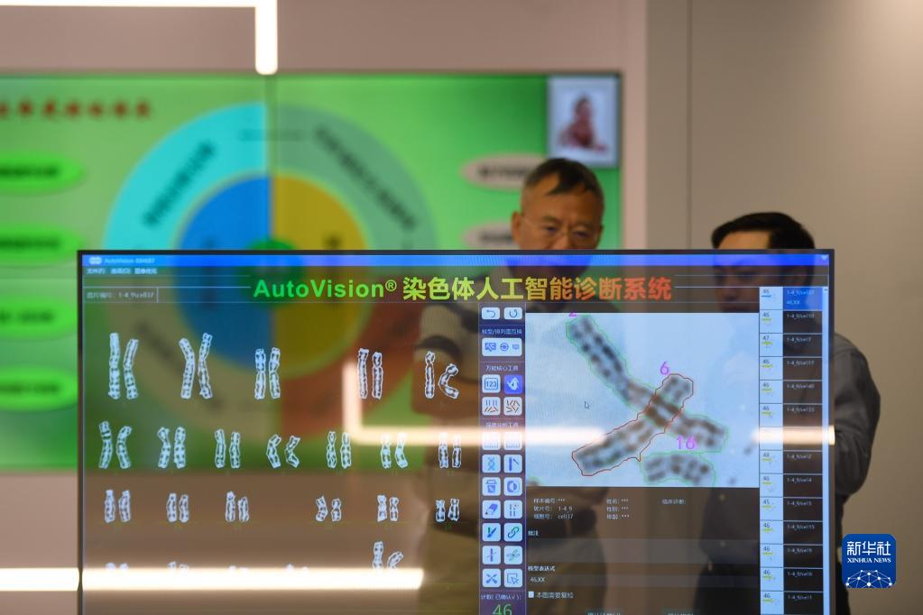 参加中国(杭州)数字·健康小镇开园仪式的嘉宾在小镇的成果转化区了解一套染色体人工智能诊断系统(2020年8月30日摄)。新华社记者 黄宗治 摄