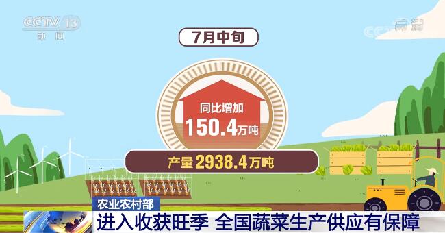 农业农村部最新发布的数据显示,当前全国蔬菜在田面积10572.1万亩,同比增加399.6万亩;7月中旬产量2938.4万吨,同比增加150.4万吨。总体看,当前蔬菜面积基数大,特别是黄土高原、东北、西北等夏秋蔬菜优势区在田蔬菜进入收获旺季,上市量增加较多,全国蔬菜生产供应是有保障的。