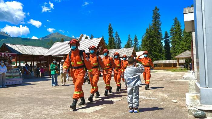 节日期间“科普背包小分队”深入景区开展防火执勤 阿勒泰森林消防支队张浩摄