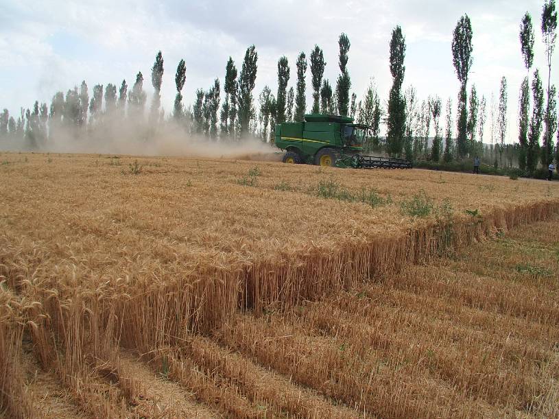 金色麦浪,保障粮食安全。6月中下旬,焉耆县七个星镇及时面向社会公开小麦收购价,发布致小麦种植农户的一封公开信,先后组织3支新时代文明实践志愿服务队,组建农机检修队伍,开展志愿服务活动,多措并举打赢夏收“攻坚战”。7月初开始小麦夏收“第一镰”,麦浪滚滚、机声隆隆,随着收割机缓缓驶过,金色麦粒从机仓口倾泻而下,直接进入路边停放的货车中。2022年,七个星镇种植冬、春小麦16801.44亩,共收割小麦16801.44亩。同时,为实现资源最大限度循环利用,组织相关人员将收割后的麦秸用收草机全部整理起来用于发展养殖业,实现畜农循环链发展。