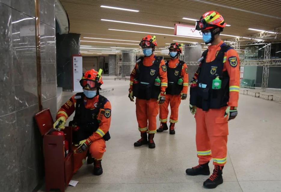 贵州省遵义市红花岗区会址消防救援站的消防员们正在进行安全巡查。资料图