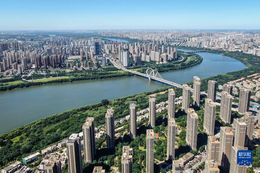 沈阳市浑河两岸风光(无人机照片,2022年8月23日摄)。新华社记者 潘昱龙 摄