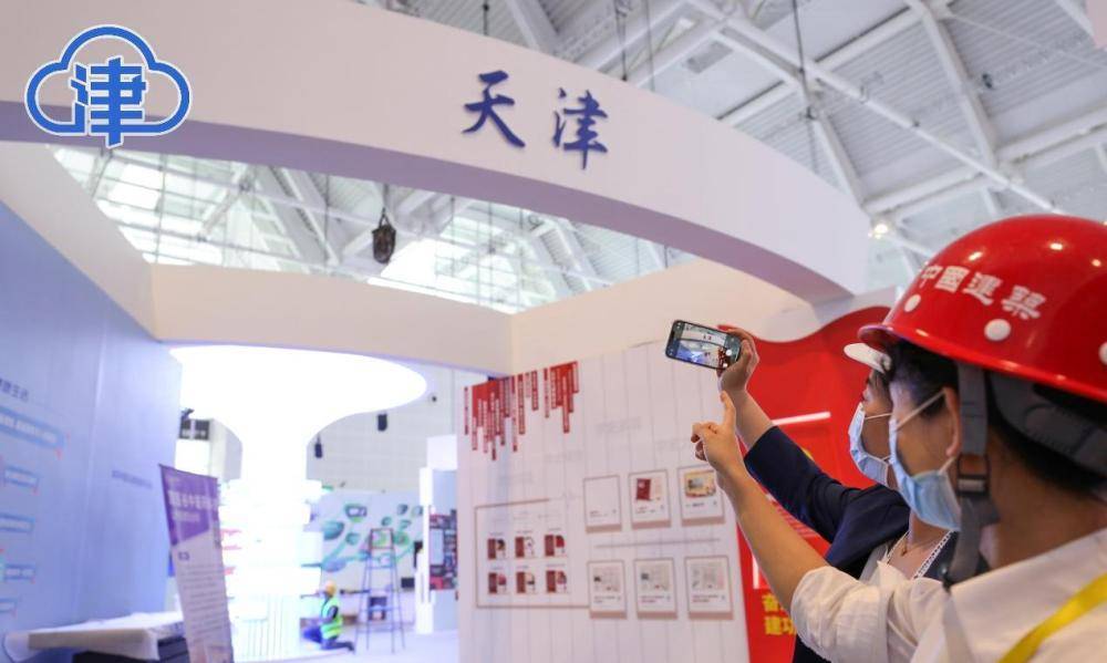 “天津展区是综合馆的第二大展位,共441平方米,以‘同心圆’概念打造整体展区,以杨柳青折扇打造扇形结构,门头汲取石家大院建筑元素设计……”在天津展区的现场工作人员现场讲解了展区“亮点”。