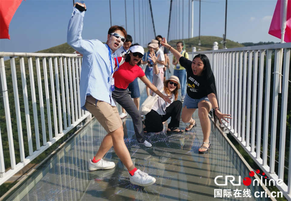 在玻璃天桥上,外国网红们纷纷“凹造型” 摄影 张永良