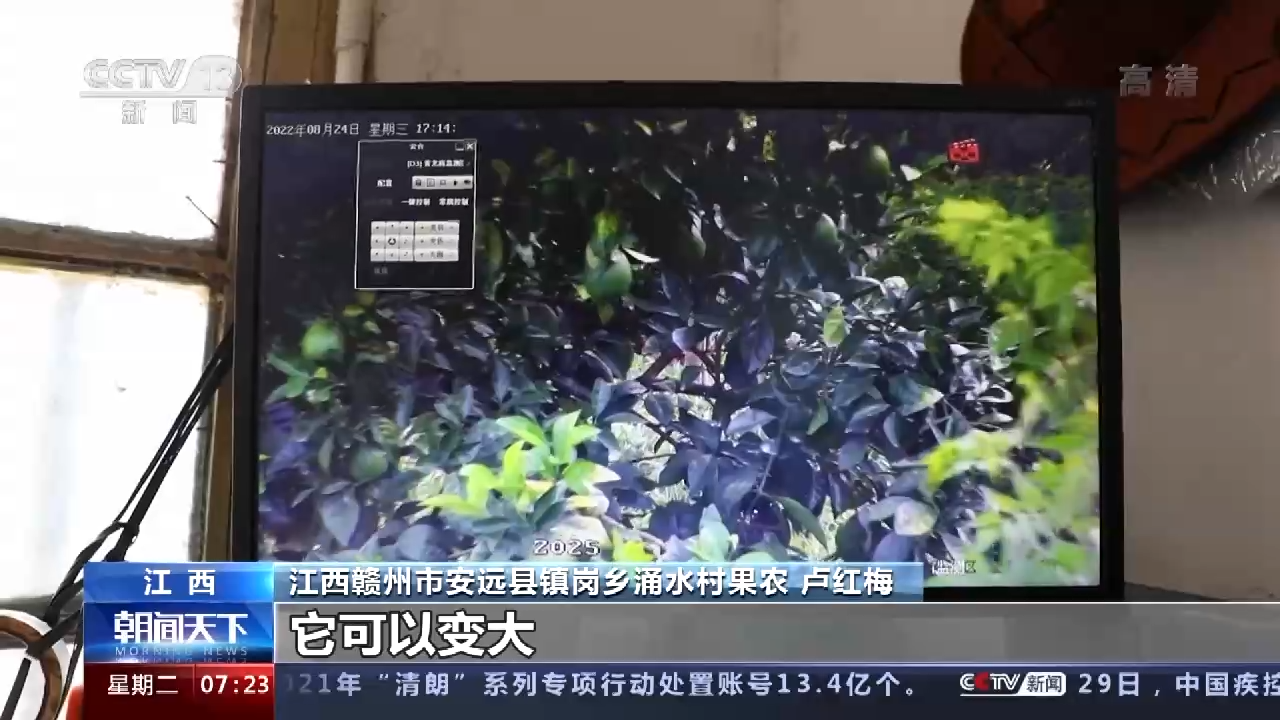 眼下正值脐橙秋梢抽生和果实膨大期,是防治病虫害、加强肥水管理的关键阶段,但安远县镇岗乡涌水村脐橙基地却几乎看不到人。果园主人告诉记者,原来打药防虫都是在果园里东奔西跑。现在靠园子里的高清摄像头和传感设备,通过电脑、手机就能随时了解果树的情况。