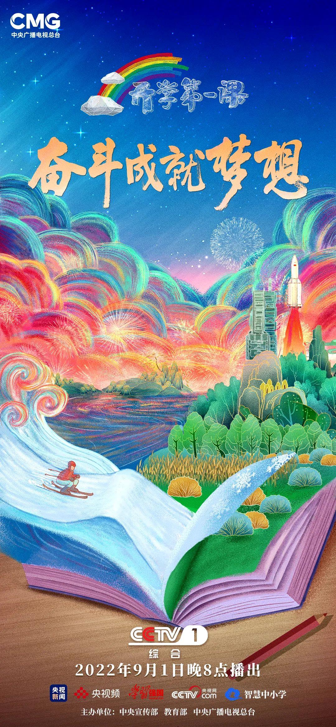 由中央宣传部、教育部、中央广播电视总台联合主办的大型公益节目2022年《开学第一课》,将于9月1日晚8点在中央广播电视总台央视综合频道(CCTV-1)播出,并在央视新闻、央视频、学习强国、国家中小学智慧教育等新媒体平台同步播出。