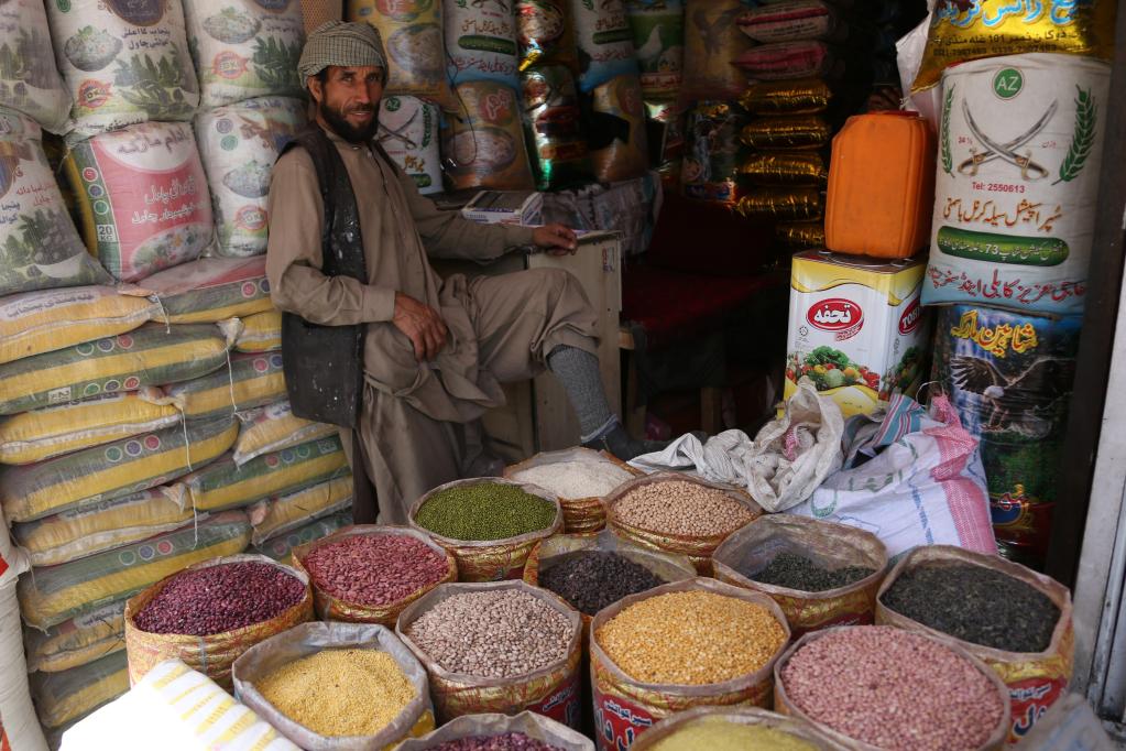 这是5月28日在阿富汗喀布尔一处粮油市场内拍摄的粮食摊位。新华社发(塞夫拉赫曼·萨菲摄)