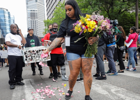 美国民众悼念非裔男子弗洛伊德被警察跪压致死。(资料图)