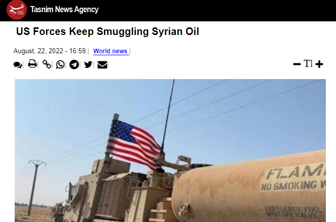 中国日报网8月30日电 据伊朗媒体塔斯尼姆通讯社日前援引一份报告称,一支美国军事车队将原油从叙利亚走私到其位于伊拉克的基地,美国继续在这个饱受战争蹂躏的国家掠夺能源资源。