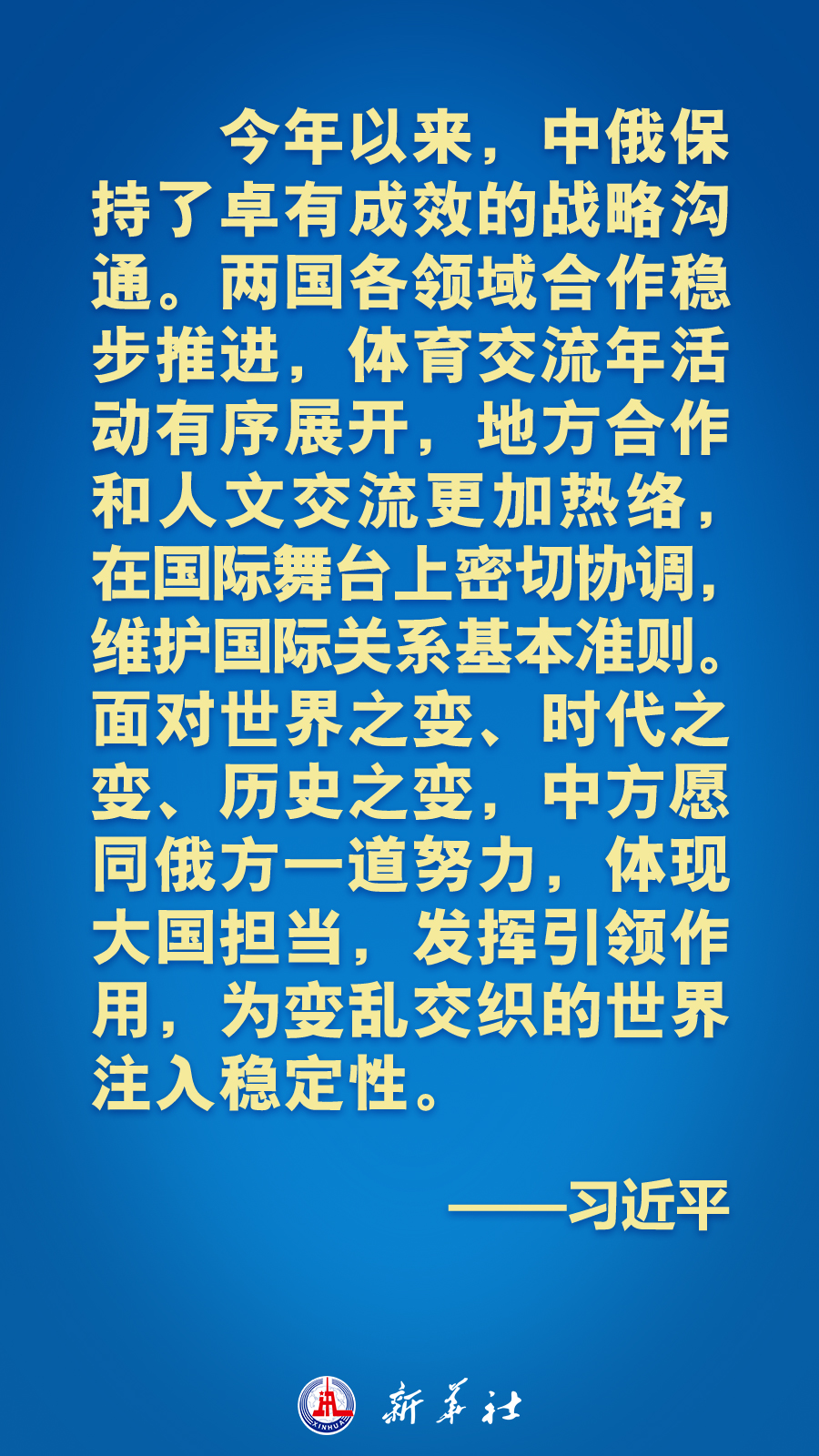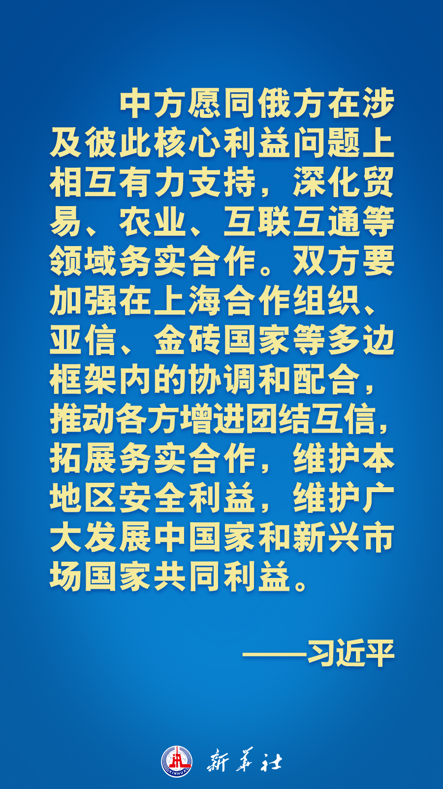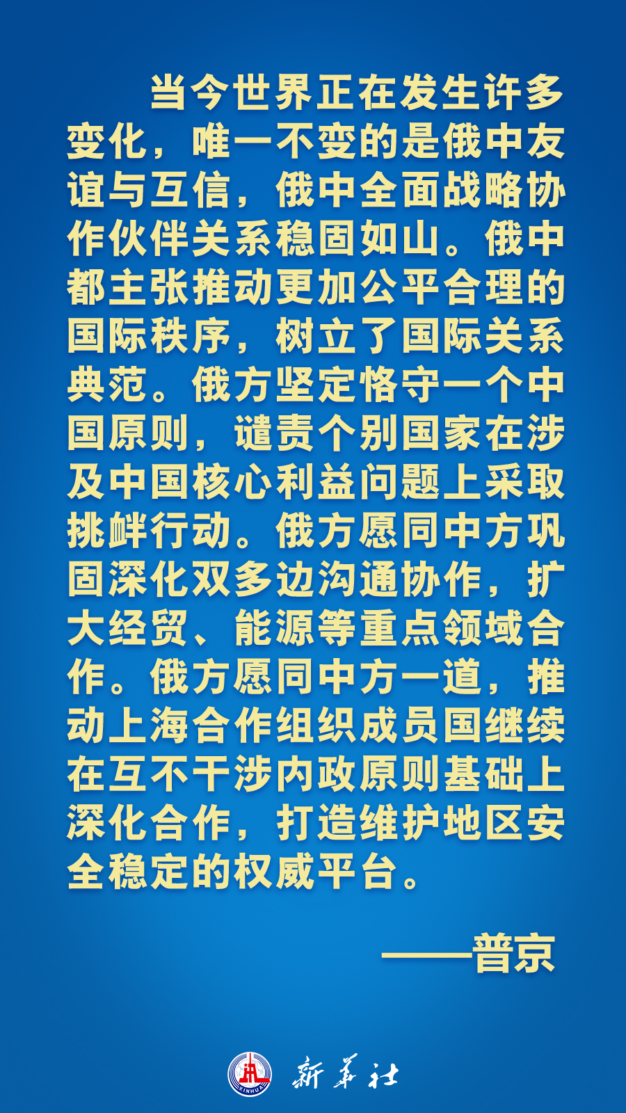 时刻新闻 —分享— 当地时间15日下午,国家主席习近平在撒马尔罕国宾馆同俄罗斯总统普京举行双边会见,就中俄关系和共同关心的国际和地区问题交换意见。习近平指出——习近平强调——普京表示——习近平赞赏俄罗斯坚持一个中国原则,强调—— 来源:新华社 编辑:王津