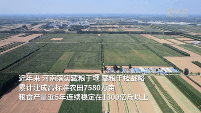近年来,河南以新担当新作为扛稳粮食安全重任,累计建成高标准农田7580万亩,粮食产量近5年连续稳定在1300亿斤以上。