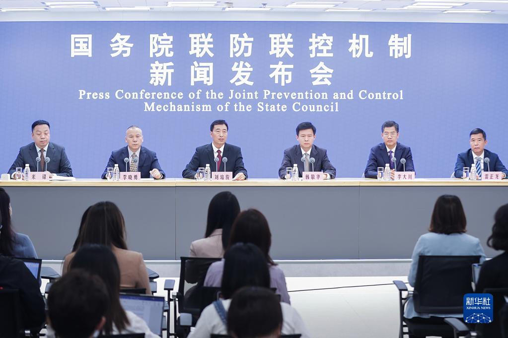 9月29日,国务院联防联控机制在北京召开新闻发布会,教育部、交通运输部、文化和旅游部、国家卫生健康委和国家疾控局相关司局负责同志出席,介绍做好国庆期间疫情防控有关情况,并回答媒体提问。新华社记者 张玉薇 摄