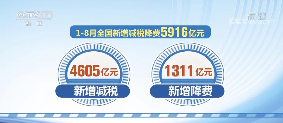1—8月全国新增减税降费5916亿元。其中,新增减税4605亿元,新增降费1311亿元。