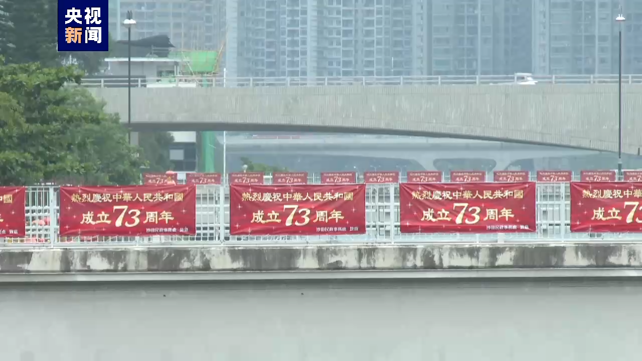 在香港的大街小巷、各个标志性建筑物开始挂满国旗、区旗以及祝福标语,写着“庆祝中华人民共和国成立73周年”的巨幅海报随处可见,多座金融大厦、街道灯柱以及维港等有关庆祝国庆的标语十分亮眼,市民们也纷纷送上自己对祖国的祝福,欢乐祥和的节日气氛尽在其中。
