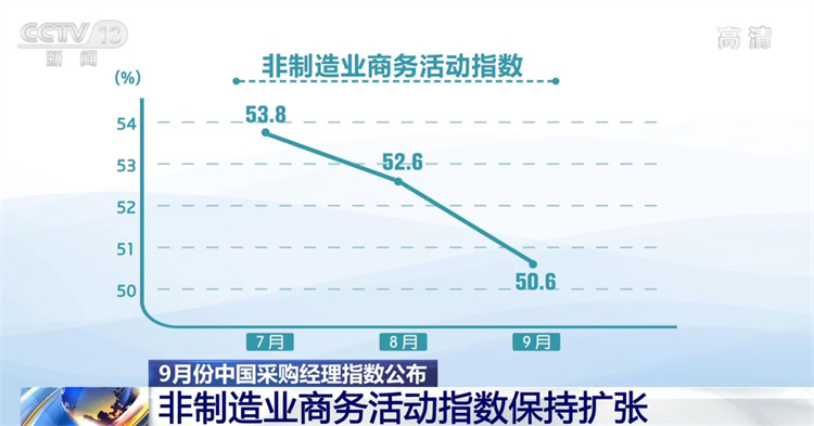 央视网消息:从非制造业情况看,今天(9月30日)公布的9月份非制造业商务活动指数仍然位于扩张区间。