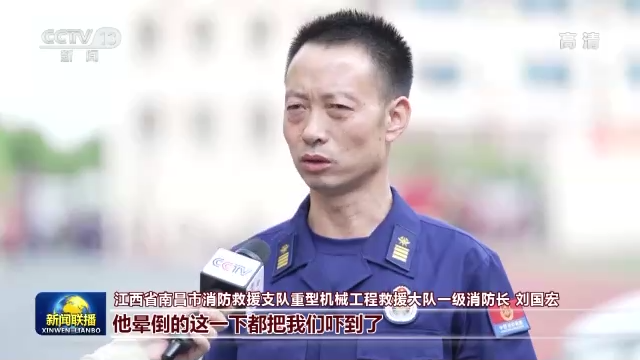 江西省南昌市消防救援支队重型机械工程救援大队一级消防长 刘国宏:他晕倒的那一下子都把我们吓到了,立马就用水浇,浇他身上,醒来他又抱着水枪,又是对着火苗阻止这个火势。