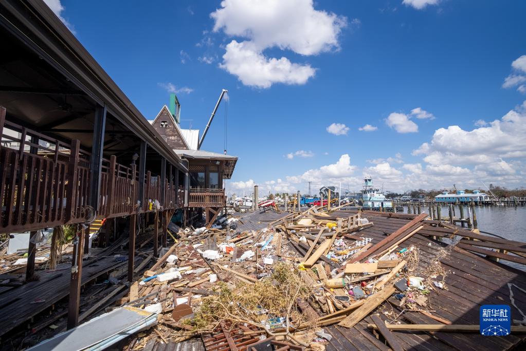 这是10月4日在美国佛罗里达州迈尔斯堡拍摄的遭飓风“伊恩”破坏的码头。 新华社发(罗兰多·洛佩斯摄)