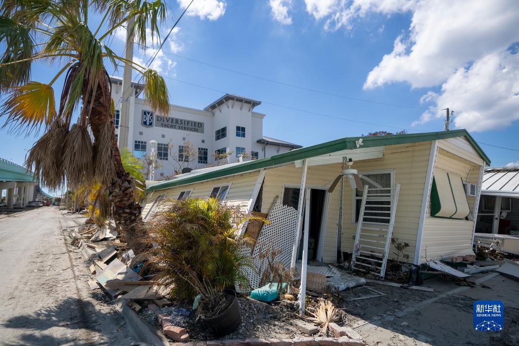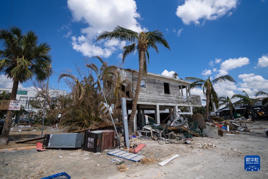 这是10月4日在美国佛罗里达州迈尔斯堡拍摄的遭飓风“伊恩”破坏的建筑。新华社发(罗兰多·洛佩斯摄)