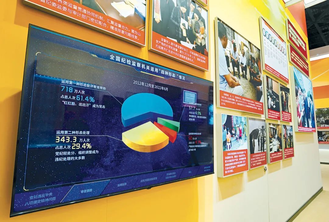 展墙上,一幅江苏省扬州市江都区纪检监察干部在粮库排查“以陈顶新”问题线索的照片映入眼帘。去年8月以来,中央纪委国家监委部署在全国范围内开展粮食购销领域腐败问题专项整治,各级纪检监察机关加大案件查办力度,并深刻剖析涉粮腐败深层次原因,督促粮食主管部门、国有粮食企业加强产、储、供、销等环节建章立制、规范管理。