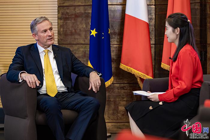 法国驻华大使罗梁接受中国网《中国访谈》专访(摄影:郑亮)