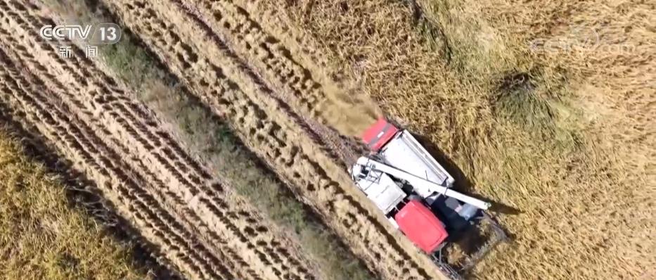 央视网消息:在安徽中稻迎来了丰收季。在肥东县相邻的两块地景象大不相同,农机作业的进度和效率也不同。