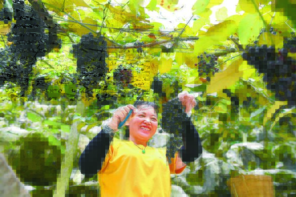 在石头缝里觅生机,小小毛葡萄承载起石漠化治理、生态振兴的愿景。在当地政府支持下,蓝钧租了上千亩荒山坡地种植毛葡萄,带动30多个脱贫户增收。“接下来,我们计划延伸产业链,发展毛葡萄酒等深加工产品,辐射带动更多群众。”蓝钧说。