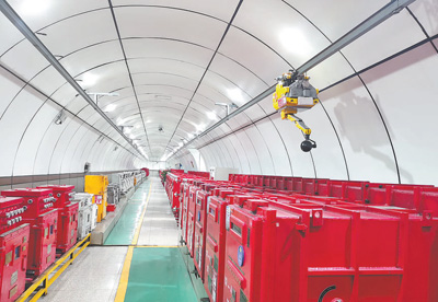 陕煤集团井下设备巡检机器人,搭载各种传感器,可实时采集巡检现场的图像、声音、红外热像及温度数据、烟雾、多种气体浓度参数等信息,便于发现故障问题,减轻人员巡检劳动强度,提高准确度。张 科摄(人民视觉)
