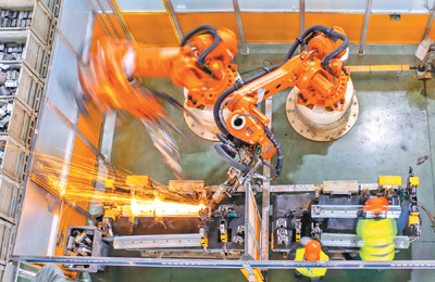 浙江省湖州市长兴晟博汽车部件有限公司数字车间,自动化设备开足马力运转,赶制新能源汽车订单产品。谭云俸摄(影像中国)