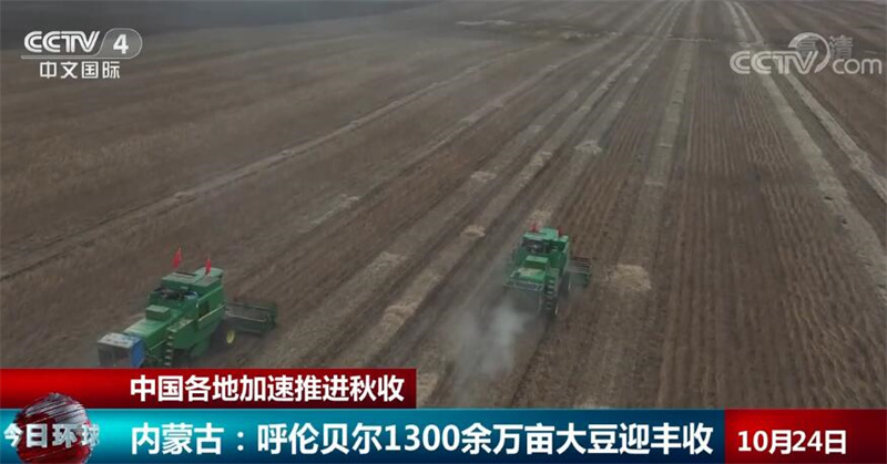 眼下,内蒙古的大豆收获接近尾声。在内蒙古呼伦贝尔市,1300余万亩大豆喜获丰收。