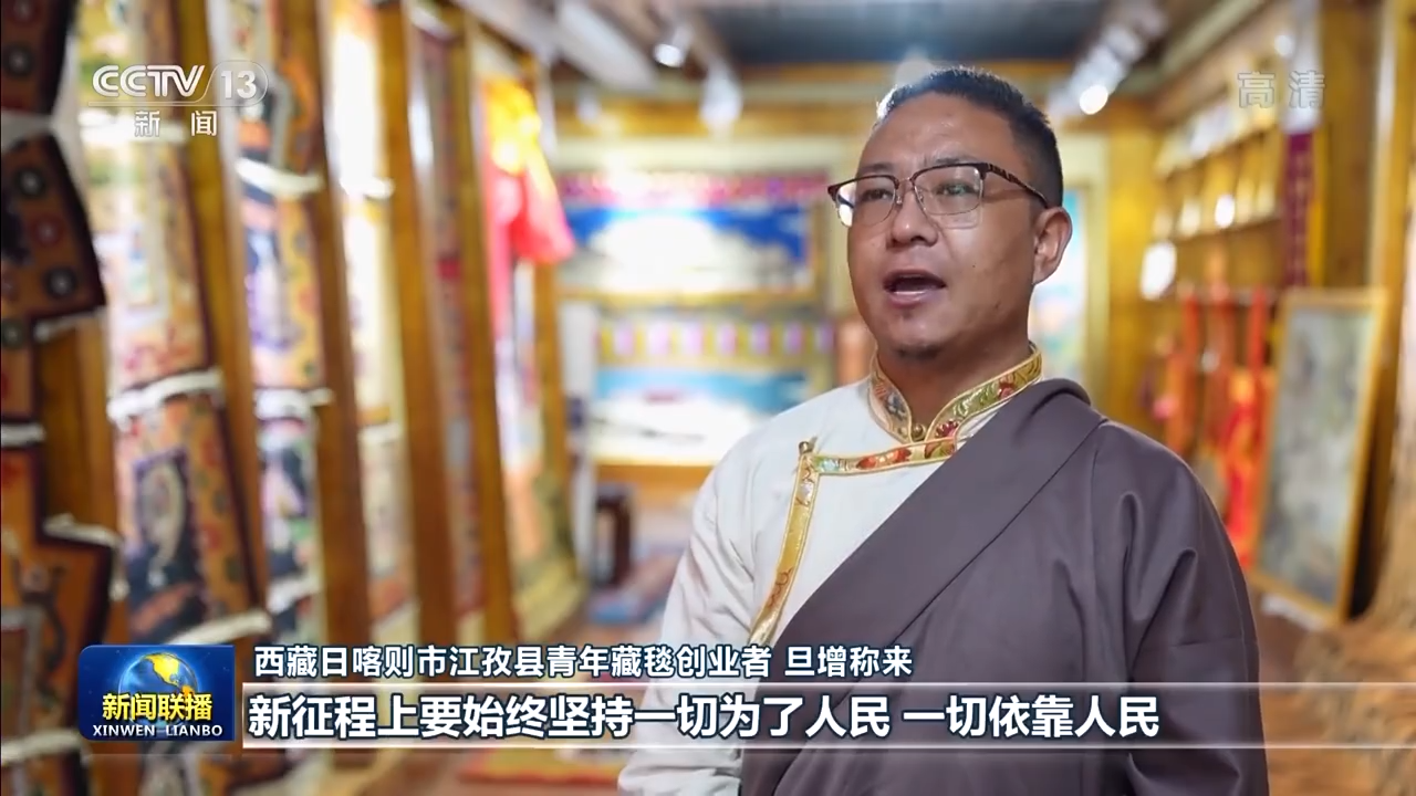 西藏日喀则市江孜县青年藏毯创业者 旦增称来:习近平总书记指出,新征程上要始终坚持一切为了人民、一切依靠人民。十年来,我们西藏各种规模性乡村产业迎来了前所未有的发展,更多的人依靠产业发展过上了更好的生活,这都是我们党始终践行以人民为中心的发展理念,让我们切切实实感受到的变化。