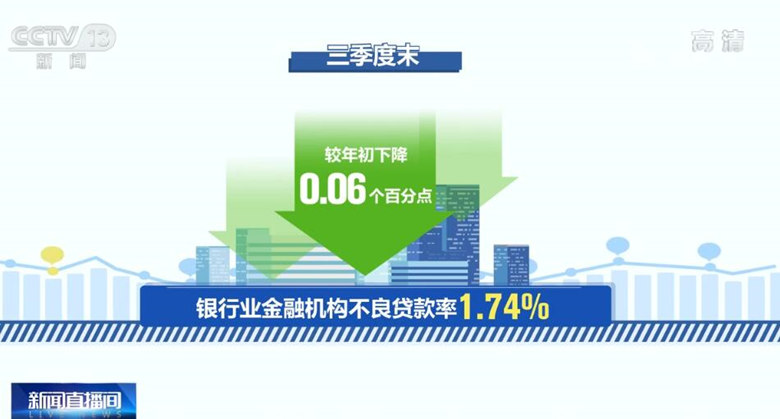 在持续加大贷款投放力度,服务实体经济质效提升的同时,重点领域风险得到有效防控,银行保险机构风险抵御能力增强。三季度末,银行业金融机构不良贷款率1.74%,较年初下降0.06个百分点。
