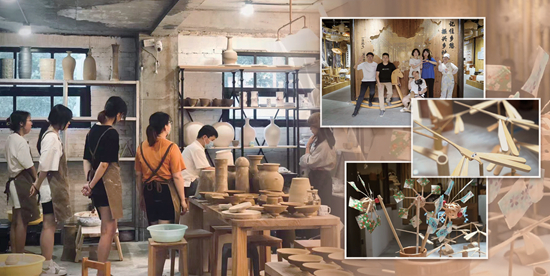 浙江传媒学院新闻与传播学院“青年有为”项目组成员参观“瓷米文创”陶艺制作过程。