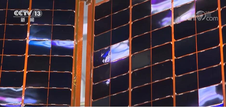 总台记者 陈庆滨:由太阳能转化而来的电能,是在轨航天器的能量来源。与普通航天器有所区别的是,在此次发射的梦天试验舱上,装载的就是我身后的这样一对“软性翅膀”——柔性太阳帆板。大家可以看到,这个太阳帆板的单板厚度不足1毫米,可谓“薄如纸”, 在这上面还装有许许多多深蓝色玻璃的小镜子,这每一个小镜子就宛如一座小型太空发电站,经串联、并联后组成太阳电池阵,为航天器提供源源不断的能量保障。