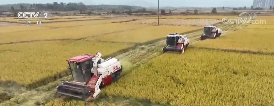 在江西南昌新建区石埠镇,种粮大户周聪的1800亩晚稻迎来了大丰收。由于禾苗在生长期光照充足,大部分稻谷的品质比往年还好,实现了产量和质量双提升。为了及时抢收成熟稻谷,给油菜播种争取时间,农户组织水稻收割机和油菜播种机同时作业。金色的稻田里收割机来回穿梭,而在收割机身后,几台油菜一体化播种机正开足马力进行作业,一次性完成开沟、起垄、播种、施肥等工作。