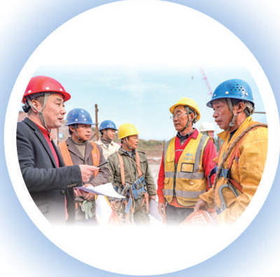四川省华蓥市法治宣讲团成员在物流园区建设工地向农民工讲解相关法治知识。邱海鹰摄