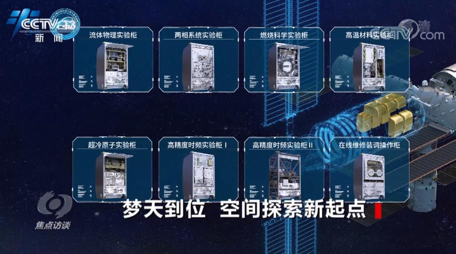 中科院空间应用中心研究员张璐:“梦天舱是三舱里面实验柜(支持科学实验)类型最多、数量最多的,包括微重力物理的、两相流的,微重力流体物理的,微重力燃烧科学的三个科学实验柜。同样在梦天舱也放了一个材料科学的,叫高温材料科学实验柜,来进行一些材料科学的研究。同时还有两个关于基础物理方面,一个超冷原子物理实验柜,还有世界上在轨最高精度时频系统,可以支持天地时间比对,包括天基授时,甚至对于未来远景的太空旅行可以有很好的时间基准。”