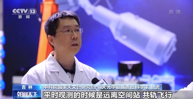 中科院国家天文台研究员 巡天光学设施责任科学家 詹虎:平时观测的时候是远离空间站共轨飞行,当它需要补给或者维修升级的时候,巡天空间望远镜会主动跟空间站进行对接,然后进行补给。