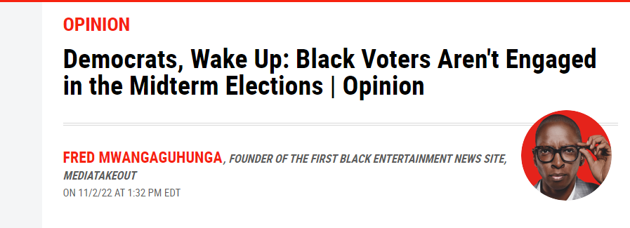他说:“因为大多数政治阶层似乎没有意识到黑人选民对中期选举不感兴趣,他们也没有竭尽全力让黑人选民重新参与进来。”