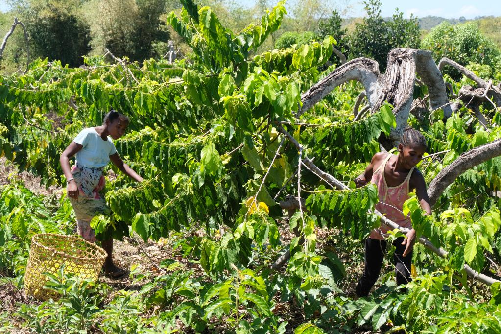 2022年9月23日,在马达加斯加诺西贝,工人正在种植园内采摘伊兰伊兰。新华社记者凌馨摄