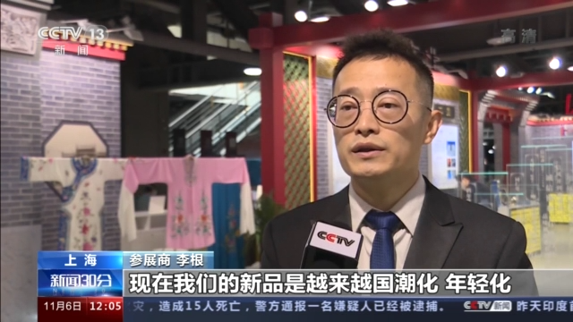 参展商 李根:现在我们的新品是越来越国潮化、年轻化,通过进博会这个平台,使国潮文化走出去成为我们新的增长点。