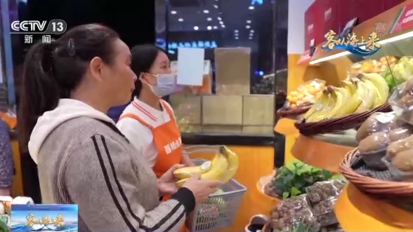 贵州遵义务川自治县丹砂街道居民 杨素华:泰国榴莲我们都经常买,还有就是买了这个菲律宾的金菠萝,这个金菠萝口感非常好,它不用泡盐水,也不用挑刺,适合老人小孩吃,所以现在我们选择的余地多,我们的生活非常幸福。