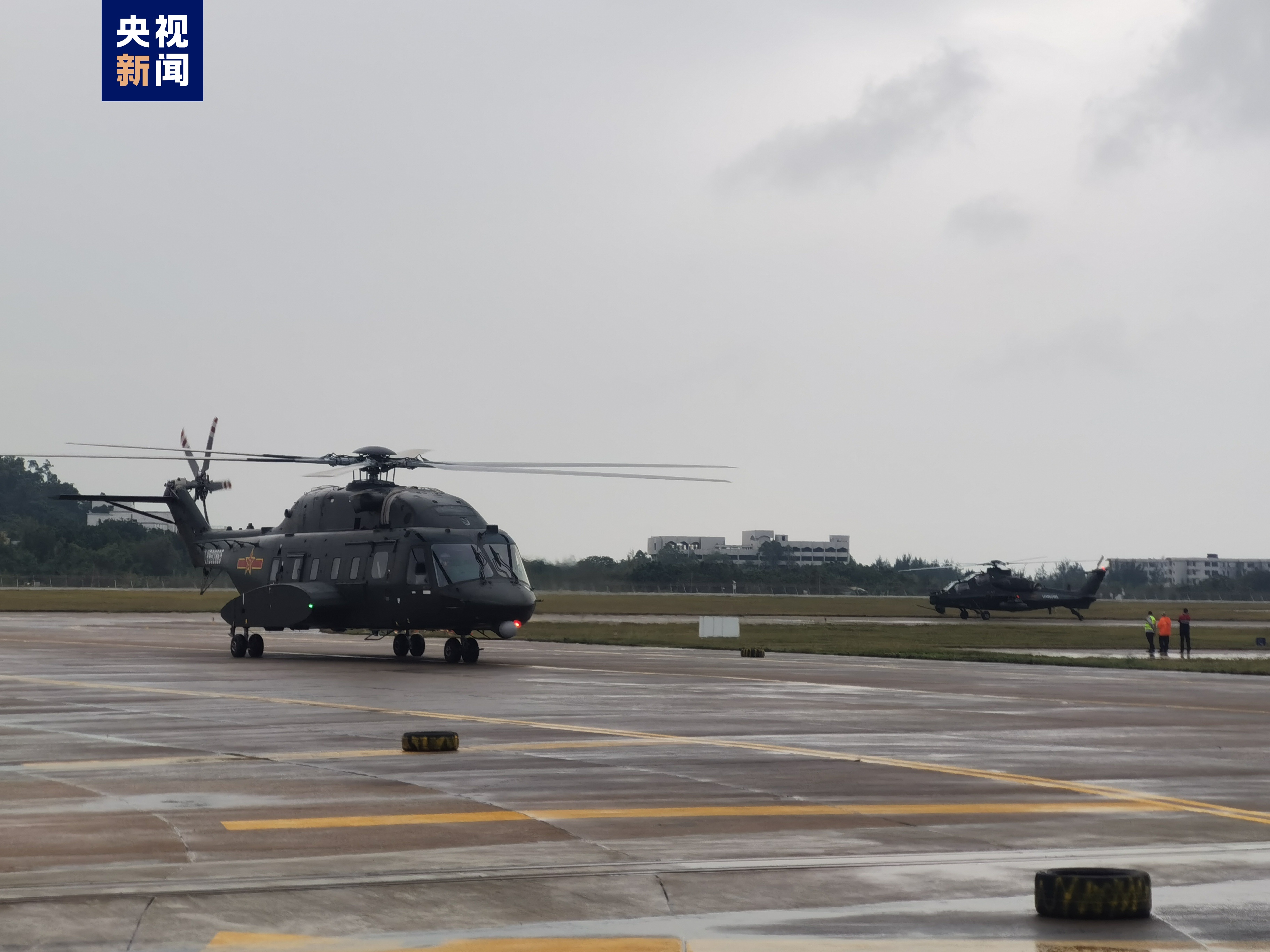 这里是珠海金湾机场,在我身后,陆军参加此次中国航展的直升机编队正在依次降落,直-10、直-8L、直-20三型直升机将齐聚珠海,为大家带来精彩的飞行表演。
