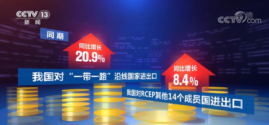 同期,我国对“一带一路”沿线国家进出口同比增长20.9%,对RCEP其他14个成员国进出口同比增长8.4%。